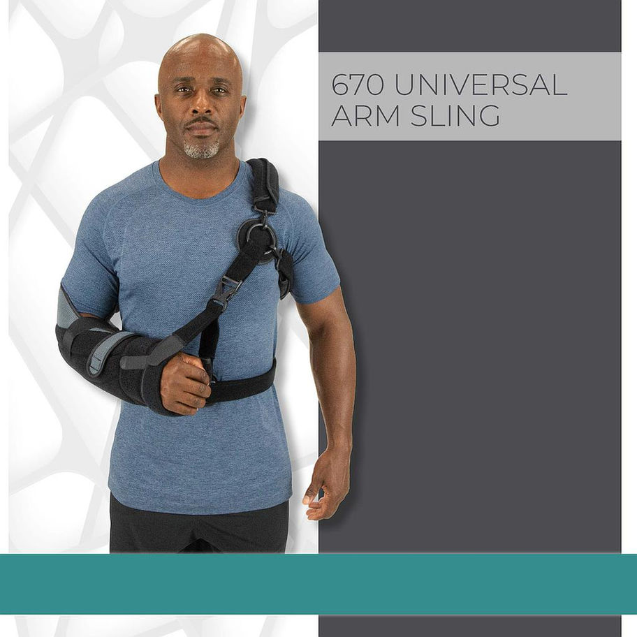 The 670 Universal Arm Sling will provide you an immobilization for improving your recovery after injury or surgery. Completely customize your level of support by adjusting the hook and loop straps located on the shoulder, wrist, and waist.